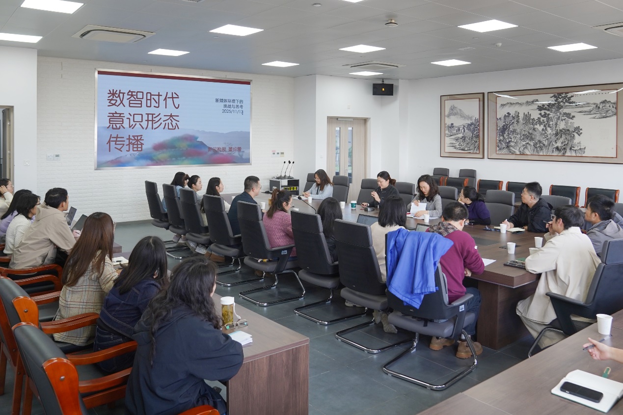 为加强学院教师队伍对意识形态的认识和理解,提升数智时代媒介素养,准确把握新时期传播规律,筑牢校园思想文化阵地,11月13日下午,学院特邀新民晚报民生新闻中心副总监(科教卫新闻部主任)董纯蕾作主题为“数智时代意识形态传播”的专题报告。学院党委书记陈晓虹主持,副院长魏爽,学院工会负责人,以及青年教师骨干近30人参加。