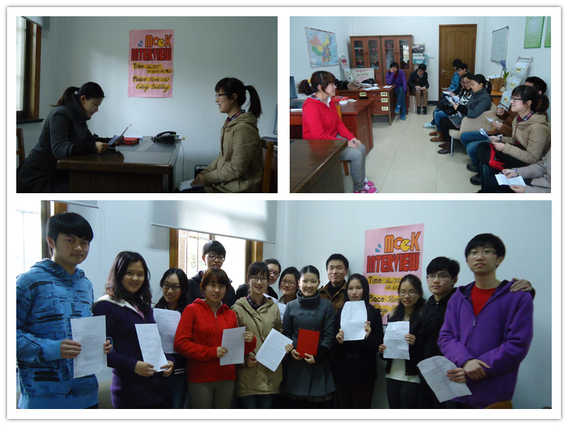2013年3月28日下午的学生事务中心气氛异常紧张,在这里,我院10电子中美班的同学们正进行着一场的全英文的模拟面试。这次面试旨在为就业意向为求职和考研的同学提供一次实战演练的机会。整个面试由实习辅导员段程程组织并担任面试官。