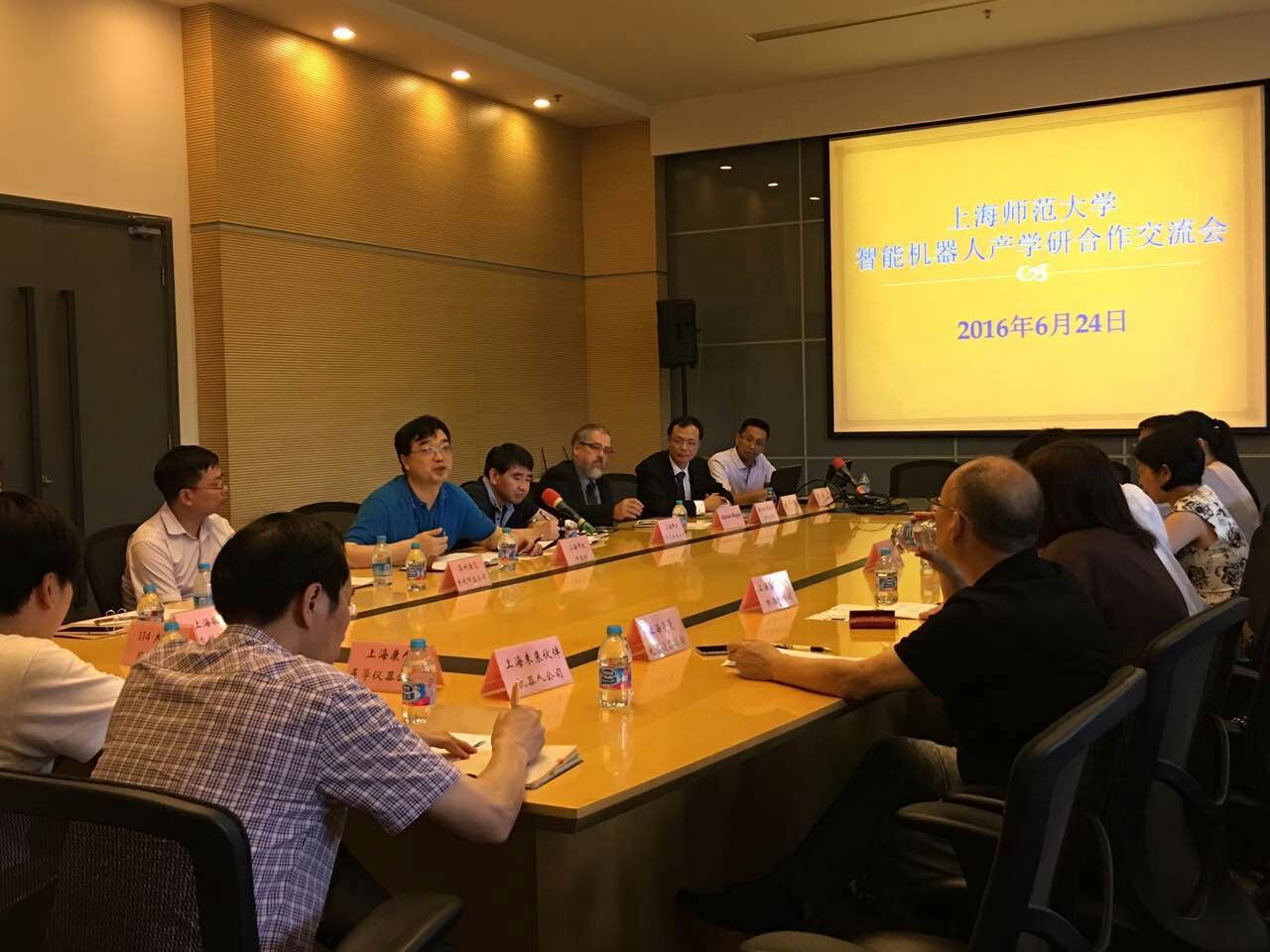 下午,Regan校长一行参加了“上海师范大学智能机器人产学研合作交流会”。会上,戚子明教授和我院李传江副教授分别就各自团队的研究成果进行了交流。同时参会的还有校科技处、上海市教委科技发展中心、上海市科协、徐汇区科委、奉贤区科委等部门和单位负责人,以及上海富洋云网机器人、苏州浩克等十余家机器人相关企业。本次会议由上海师范大学技术转移中心和我院共同主办。