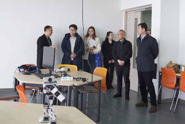 双方从学科规划、课程体系建设及科研团队组建等角度进行了深入交流,还在共建实训基地、打通学生实习就业“绿色通道”等方面达成了初步共识。会前,在潘建国等人的陪同下,嘉环科技一行参观了学院实验室。