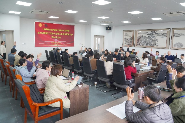 3月25日下午,学院第四届教职工代表大会暨工会会员代表大会第四次会议在奉贤校区科技楼A座801会议室召开,大会正式代表、列席代表出席,学院工会主席黄诗旸主持会议。