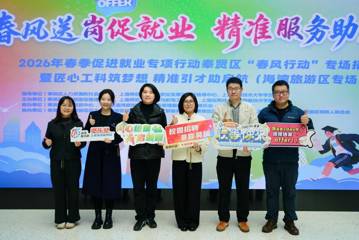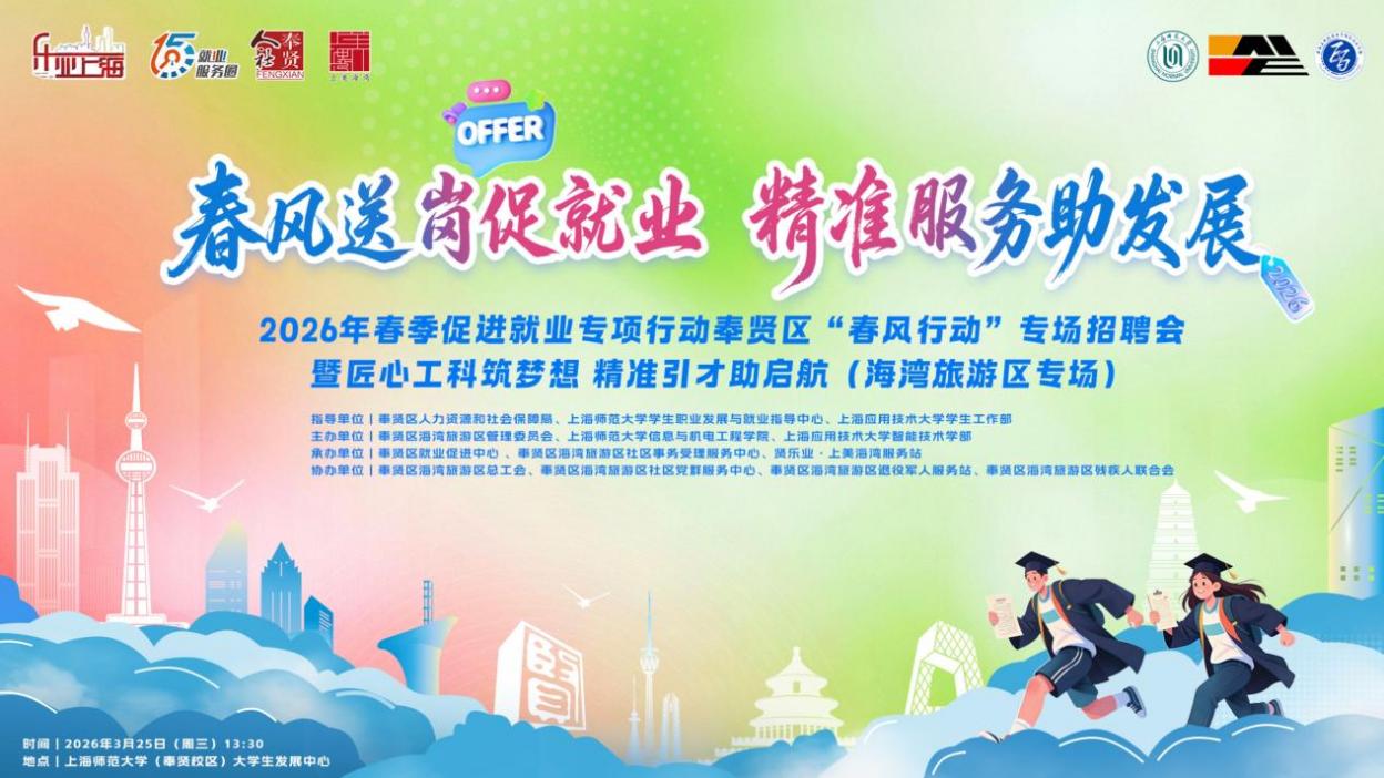 为扎实推进2026届毕业生就业工作,深化校地协同与产教融合,切实为毕业生搭建高质量就业与实践锻炼平台,在奉贤区人力资源和社会保障局、校学生职业发展与就业指导中心及上海应用技术大学学生工作部指导下,3月25日,我院联合海湾旅游区管理委员会、上海应用技术大学智能技术学部,于大学生发展中心成功举办2026年春季促进就业专项行动奉贤区“春风行动”专场招聘会暨“匠心工科筑梦想精准引才助启航”海湾旅游区专场活动。