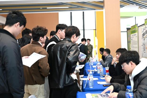 本次招聘会以校地协同为纽带,紧扣学院新工科专业建设与人才培养特色,精准对接集成电路、人工智能、新材料等重点产业领域需求,精心筛选57家优质用人单位参会,提供高质量就业岗位200余个,全面覆盖学院各专业方向,实现人才供给与行业需求精准匹配。同时,活动特别联动奉贤区人社局、区委组织部、团区委等单位,面向低年级学生开放了一批实践见习类岗位,涵盖档案整理、政务服务、调研协助、活动组织等多个维度,为学子搭建“早期实践锻炼平台”,助力实现早认知、早规划、早成长,为未来职业发展筑牢根基。据统计,本次招聘会吸引300余名学子参与,累计收到简历580余份,初步达成面试意向200余人,有效推动了毕业生更高质量、更充分就业。