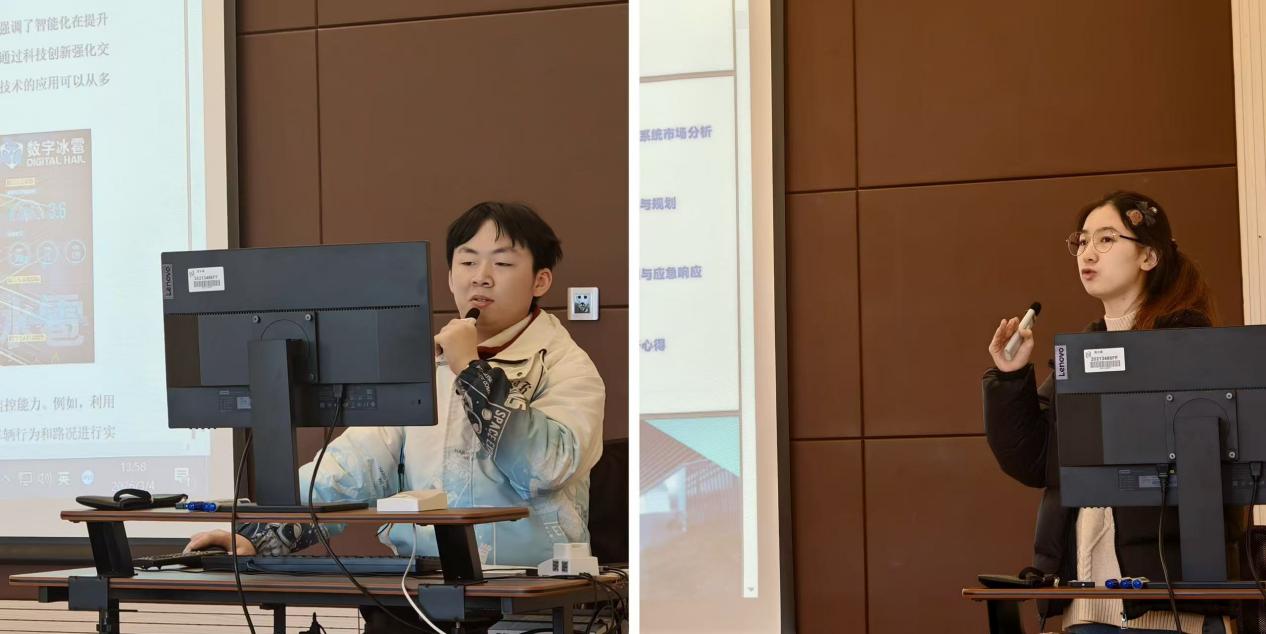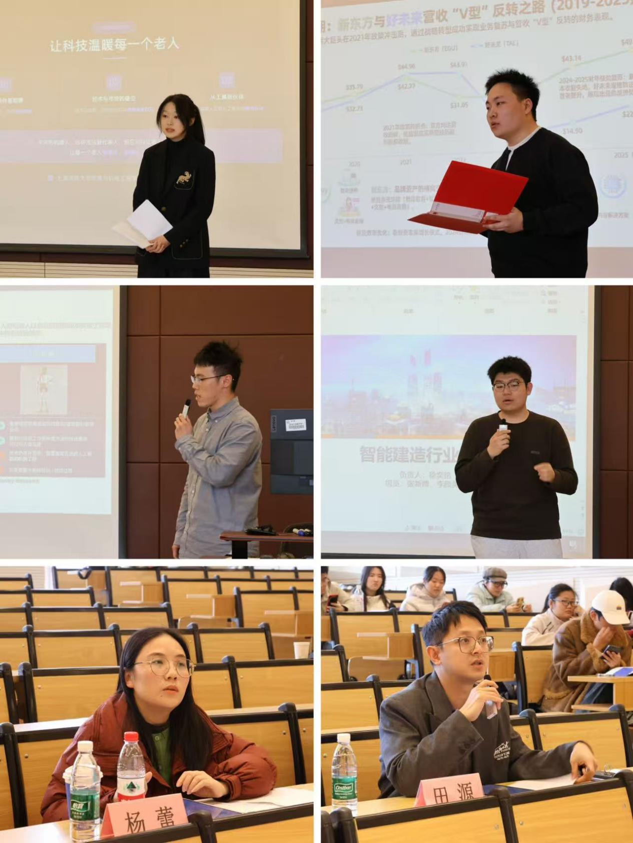 比赛现场,各队伍对所选行业进行科学合理的分析,并介绍了可行的研究方案。两位评委根据各队伍的项目汇报,围绕方案亮点、优化方向、行业适配度等维度展开细致点评与专业指导。为各团队后续优化提升、全力冲刺校级赛事提供了精准可行的建议。
