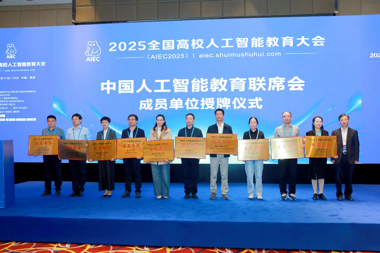 10月18日,2025全国高校人工智能教育大会(AIEC 2025)在陕西省西安市成功举办。会议由教育部高等学校计算机类专业教学指导委员会、中国人工智能教育联席会等联合主办,西安交通大学承办,汇聚了郑南宁、郑庆华等多位院士及全国高校人工智能领域的专家学者,围绕人工智能人才培养、专业培养体系建设、专业课程设置、人工智能领域“101”计划、产教融合等热点话题展开深度交流。我院入选“中国人工智能教育联席会”会员单位。