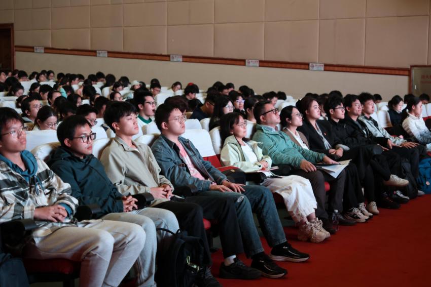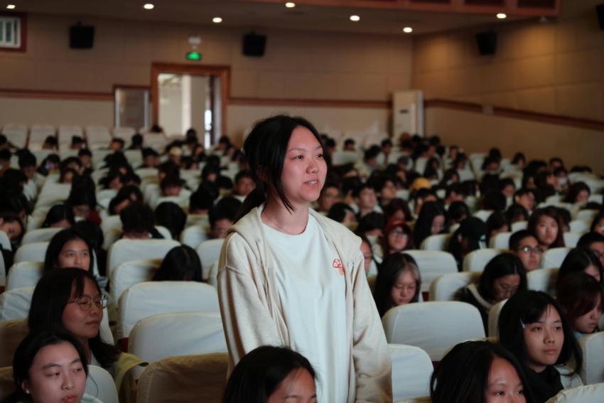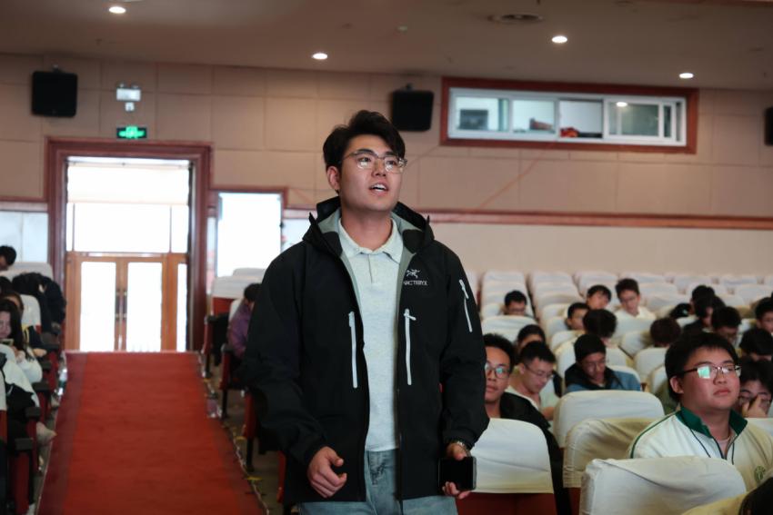 讲座尾声,同学们纷纷举手,向邵老师提问了关于入党时间、入党动机、努力方向以及如何成为一名优秀的共产党员等问题。邵老师结合自身经历和感想一一回答,并再次向同学们强调“全心全意为人民服务”不是一句空洞的口号,而是融入血脉的根本宗旨,鼓励同学们将个人价值与集体利益相融合,在学习和生活中切实发挥榜样先锋作用。