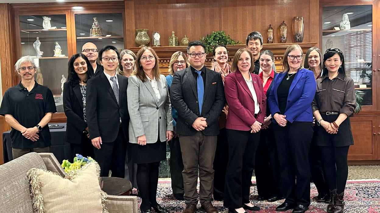 戴顿大学全球跨文化事务中心高级主管Tim Kao,主管Sangita Gosalia,副主管Emilio Mitolo,工程学院学术与学生事务副院长Dr. Kim Biglow,工程学院招生主管Laura Bistrek、工程学院研究生项目主管Brenda Clawson Flanagan、工程技术与管理系主任Susan Schachitti、机械工程系主任Dr. Jamie Ervin、电子工程系研究生主管Dr. Raul Ordonez、工程技术管理系Ethos项目Prof. Scott Schneider、Prof. Jame Obermeyer以及Sean Cahill参加接待和交流。