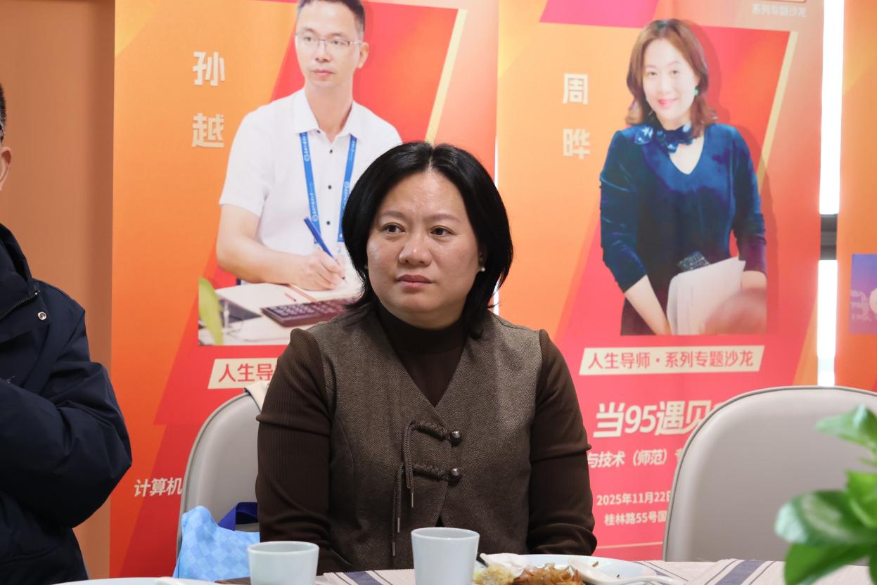 2025年11月22日,信息与机电工程学院在国教中心一楼举办“当95遇见25”人生导师沙龙,特别邀请1995级计算机师范专业校友复旦大学附属复兴中学信息中心主任奚骏、上海师范大学附属嘉定高级中学党委副书记、副校长(主持工作)孙越、上海市文来中学(初中部)校长助理、闵行区学科带头人周晔、金山区亭林中学校长顾海英、嘉定世外中学校长朱萍与2025级同专业学子围坐畅谈,通过校友导师的经验分享与师生互动答疑,为新一代师范生铺就成长之路。活动由2025级计算机科学与技术(师范)专业辅导员张丹主持,现场氛围热烈而真挚,尽显师范精神的代代相传。