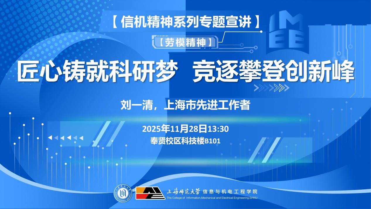 为弘扬新时代劳模精神,激发师生科研创新热情,11月28日下午,学院特邀上海市先进工作者、华东师范大学教授刘一清做客学院人生导师沙龙活动,以“匠心铸就科研梦 竞逐攀登创新峰”为主题,为师生分享科研育人经验与创新实践成果,为在场师生勾勒出一幅以劳模精神驱动科技创新的实践图景。学院青年师生代表近百人参加,活动由学院青联会执委吴天祥主持。