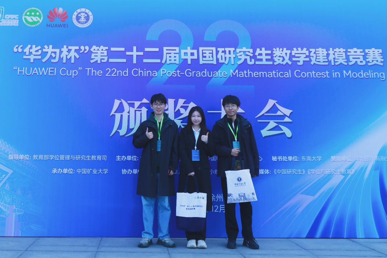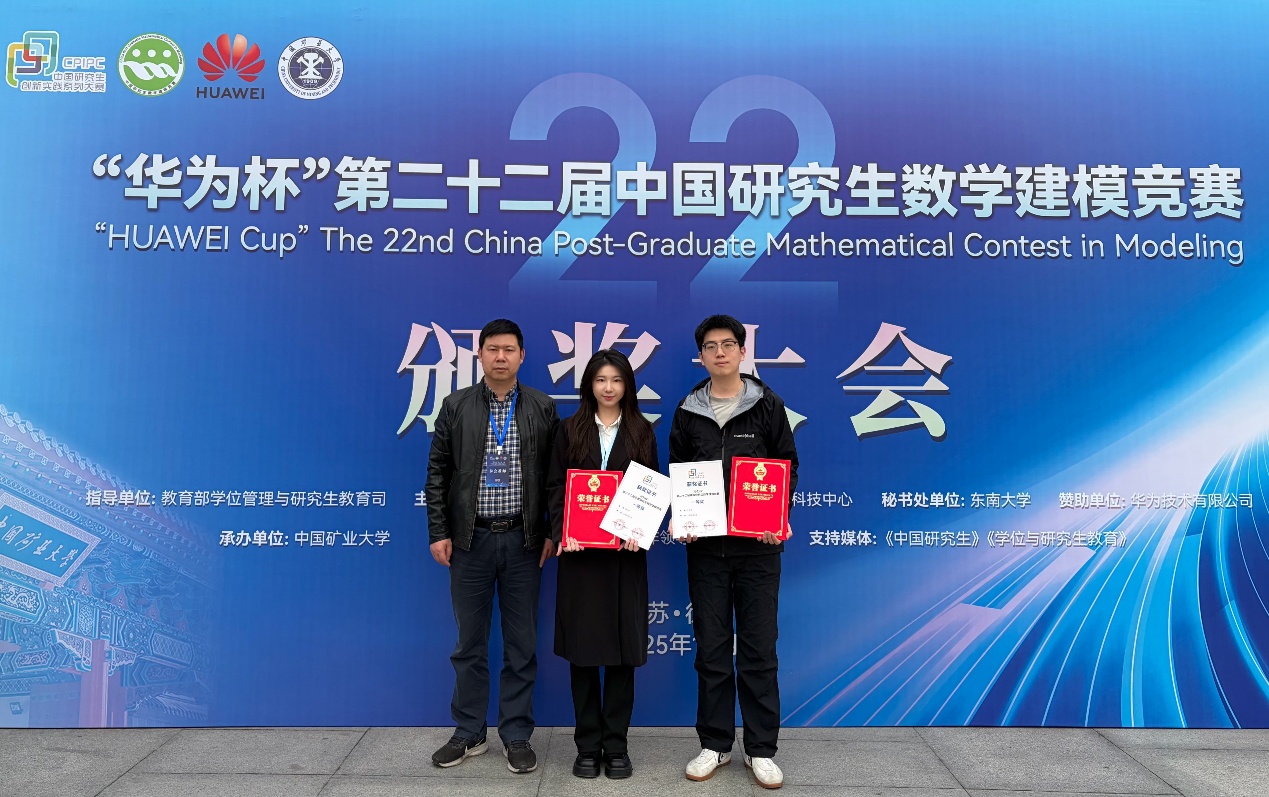 近日,“华为杯”第二十二届中国研究生数学建模竞赛颁奖大会在中国矿业大学举行。来自全国各地的获奖师生代表、专家组成员等共600余人参加了会议。我院2023级硕士研究生鞠心怡、郭涵滔、鲁煜组成的队伍以第六名的优异成绩斩获全国一等奖。