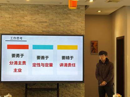述职会以“思政育人”为核心主题,辅导员紧紧围绕“思政育人”主线,分别从党建工作、班级管理、专项板块工作等维度,系统梳理了2025年度自身在思政育人领域的工作理念与实践举措。结合具体工作案例,详细阐述了在强化学生理想信念教育、培育优良班风学风、助力学生成长成才等方面取得的实际成效,生动展现了学院辅导员扎根一线、潜心育人的责任与担当。辅导员还结合自身工作思考,提出了一系列具有针对性和可操作性的改进思路与解决办法,为后续工作的优化提升明确了方向。