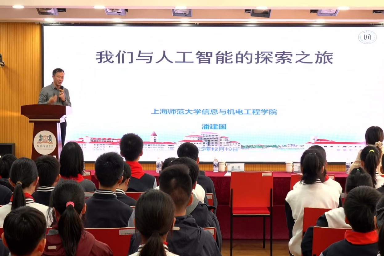 12月19日,学院副院长(主持工作)潘建国教授在闭幕式上为同学们带来了题为“我们与人工智能的探索之旅”的科普讲座。讲座以通俗易懂的语言,结合生动案例,解读了AI前沿动态及其与社会、伦理的关联,不仅启蒙了学生的科学思维,更引导他们思考科技的人文意义,有效培育了批判性思维与社会责任感。