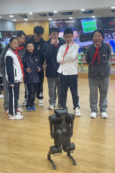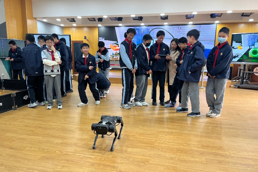 机器狗体验区成为热门打卡点,同学们在高校志愿者指导下,体验机器狗的快速移动、平稳避障、跳跃转身等基础动作,亲身感受高端智能机器人的运动控制技术。