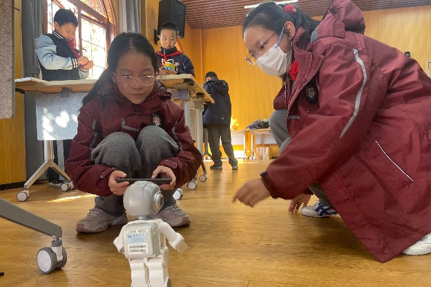 双足机器人展示区里,能完成打招呼、跳舞、功夫表演的机器人引发阵阵欢呼,同学们还通过编程平板拖拽积木式模块,亲手为机器人编排专属动作序列,直观体验编程与人工智能的奇妙融合。