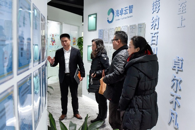 活动伊始,在企业负责人的陪同下,学院一行先后参观了公司企业文化墙、业务部门,切身感受企业鲜明的文化价值观、严谨务实的管理理念。作为一家深耕数字化服务领域的国有企业,公司凭借百余项招投标项目经验和资质证书专业积淀,行业影响力与市场地位稳步攀升,已发展成为国内数智运行与数字化服务领域的标杆企业之一。这让学院一行对企业的发展实力、行业话语权和文化底蕴有了更为直观、深刻的认识。