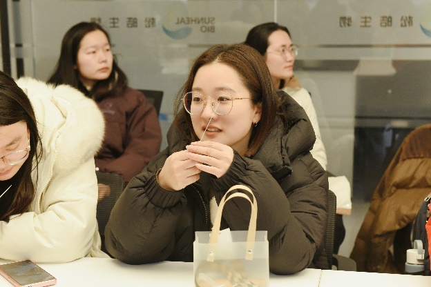 在工作人员的引导下,大家参观了阿莱德科技园区和上海松皓生物科技有限公司,了解了奉贤校区周边的产业发展状况和松皓生物在相关科技领域的产研成果,对产学研的深度融合有了更直观的认识。