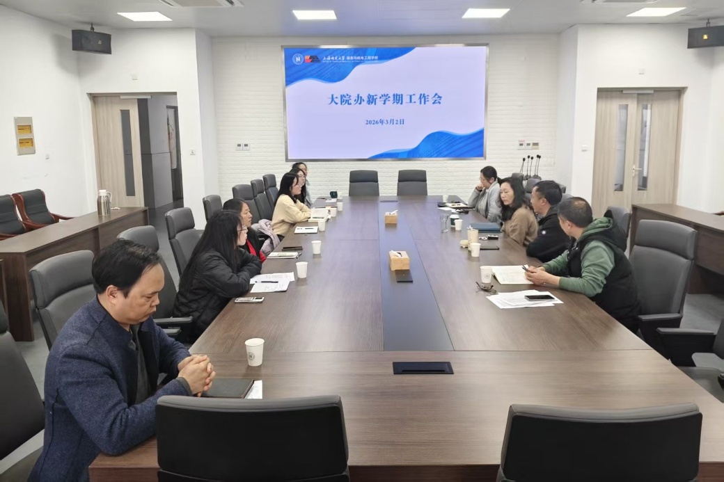 为部署新学期行政重点工作,明确工作重心,3月2日,我院在奉贤校区科技楼A座801会议室召开2026年大院办新学期工作会。学院党委书记陈晓虹、副院长(主持工作)潘建国出席,行政各部门工作人员参加,办公室主任黄诗旸主持会议。
